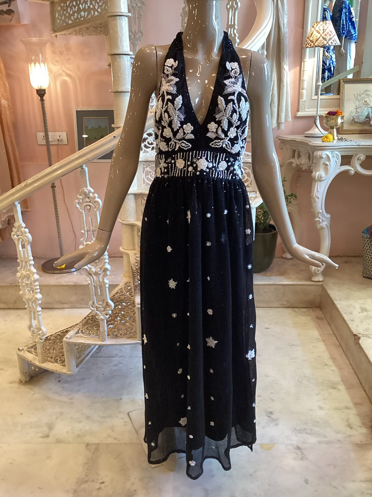 Stupendously, luxurious hand beaded hand embroidered black and white sequin gown for statement dressing at a red carpet or black tie black event